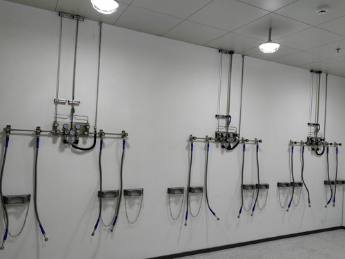 2.4N氦氣經理助理線選取OD3/8”(6.35mm)的管,0.5Mpa重壓粗俗量可達到8M3/小時,已經滿足需要傳統用氣供需,支線選取OD1/4”(6.35mm)的管。用氬弧焊三通接頭分辨支路來對設備參與供氧。